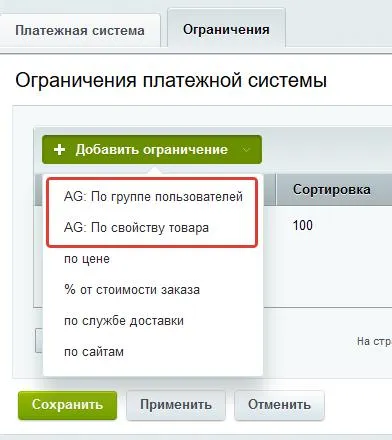 С помощью данного ограничения вы можете показывать или скрывать оплату/доставку для указанных групп пользователей.
