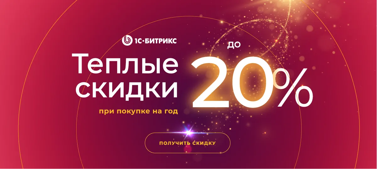 Теплые скидки для вашего бизнеса от «1С-Битрикс: Управление сайтом»: скидки до 20% на лицензии с 1 по 30 декабря.